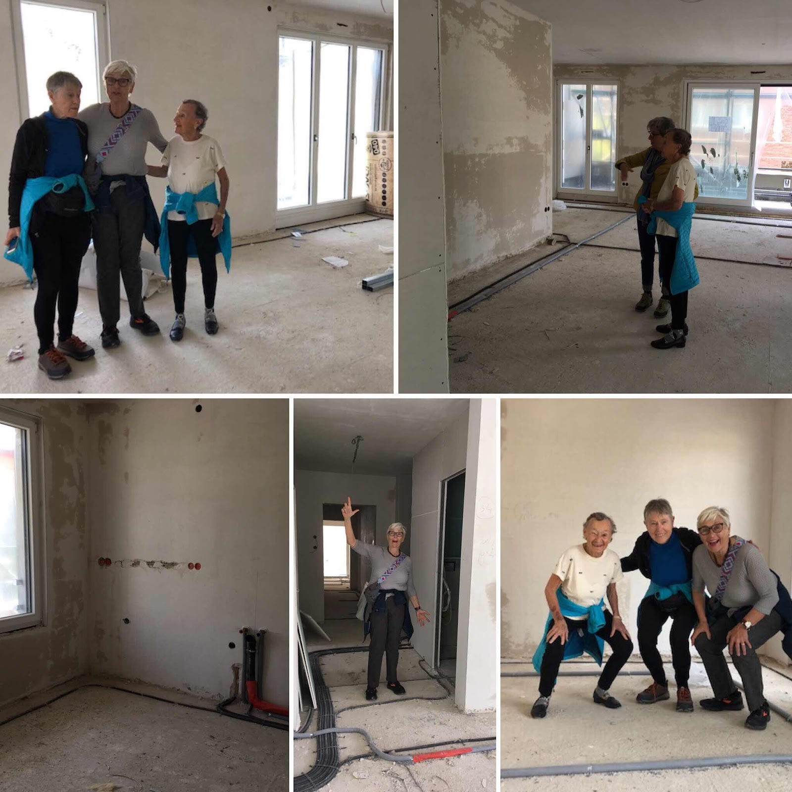 Meanwhile when my feet last touched the ground we were walking from Sabine and Agnes’s present home to their future home. Photo 2 is a collage of photos of the new flat. My favorite is the lower right where Sabine, Chris and I are sitting on imaginary chairs in the dining-room-to-be.