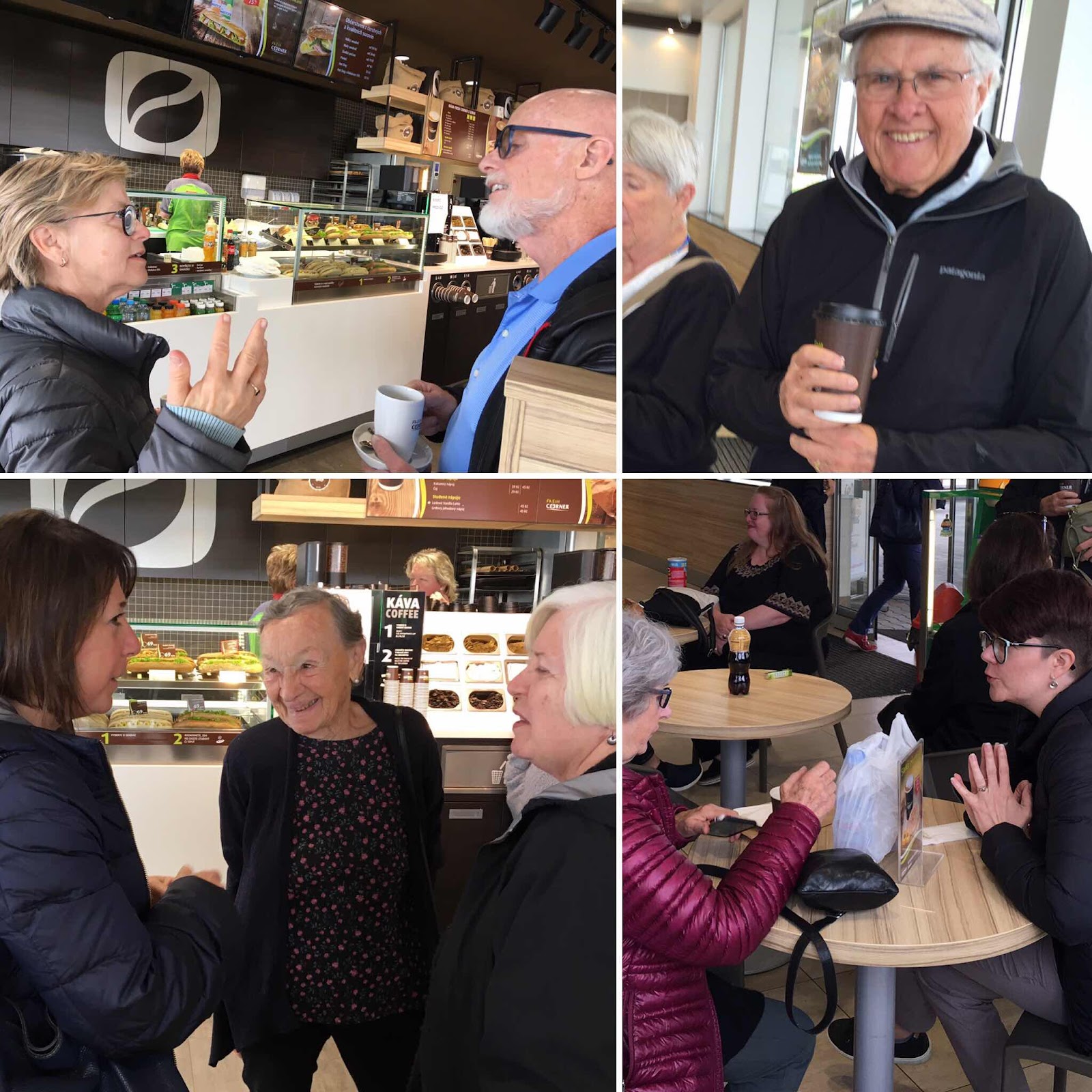 This makes me aware and grateful for faces and facial communication. Photo 3 is a collage  of our group at our rest stop on the bus trip to Pribor yesterday. And photo 4 is Chris’s face as she sleeps right now on the bus beside me.