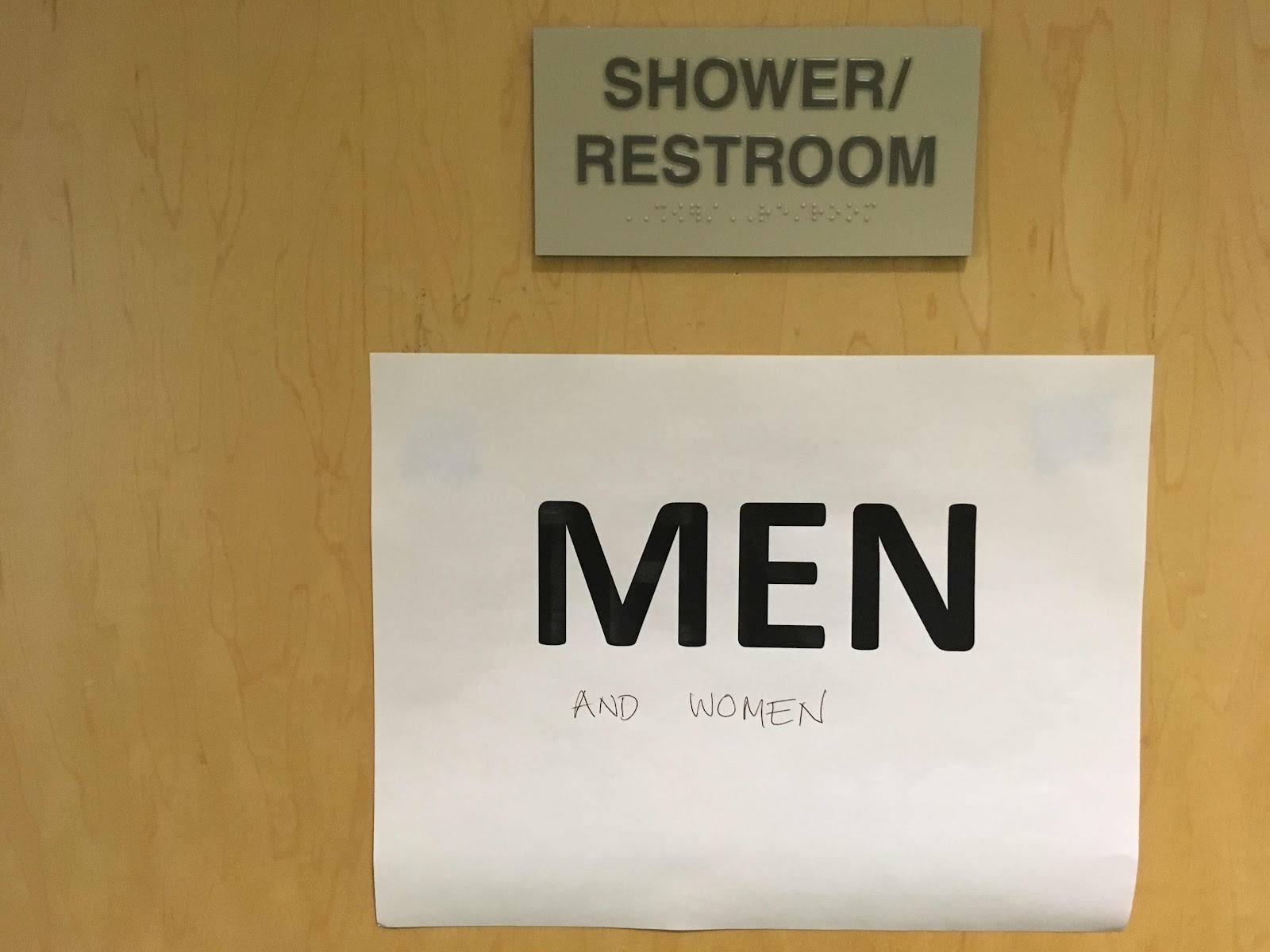 Meanwhile, back to the tracks that used to divide north (men) from south (women) campus. The new modern dorm where most of our class was housed had two restrooms on our floor. During alumni college there were no gender signs posted and with some anxiety I used the nearest one. (I had used mixed gender restrooms often in Spain on the Camino, but at Grinnell in my day the other gender lived on the other side of the track. Actually, according to our speaker coed dorms began my senior year but I lived off campus that year and do not remember experiencing them). But after the Alumni College Days, once the reunion officially began, someone posted “MEN” on the restroom next door to me, and “WOMEN” on the restroom at the far end of the hall. I ran into a make classmate from the far end of the hall in the same predicament as me, and we had a lot of fun adding women to the men sign and men to the women sign (photo 9).