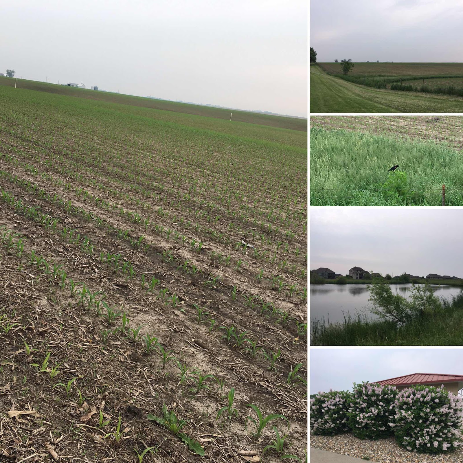 Pictures. We need pictures to anchor this swirl of memories and associations. Walking alone just a short way from campus, I walk among newly planted cornfields, the gentle curves of the prairie, a red winged blackbird, a pond and a barn, the fragrance of lilacs. (Photo 7).